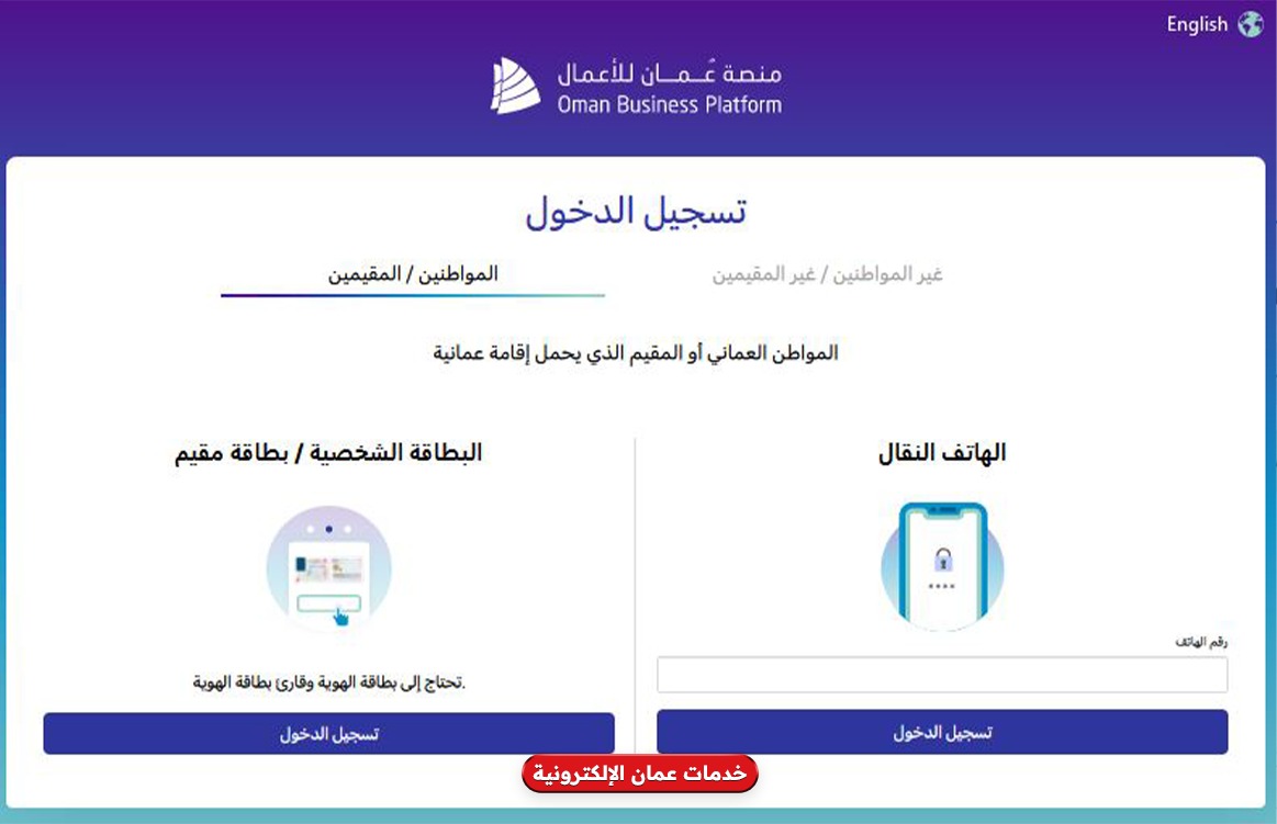 - الضغط على تبويب (مواطن / مقيم، شركة عمانية، شركة أجنبية).