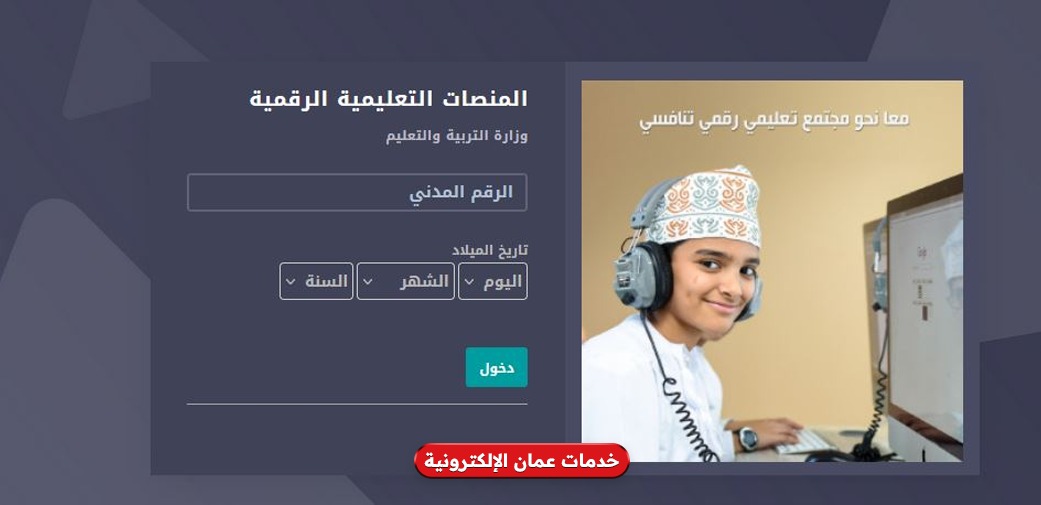 بعد استخراج بيانات الحاسب يتم تسجيل الدخول إلى منصة منظرة التعليمية في سلطنة عمان على النحو التالي: [2]